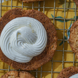 I actually never had one until I was in my 20’s and my first child was in school and had one, so when he asked me to buy them I said sure, having no idea how that cookie would shake up my world. I was never a cookie lover...chocolate chip? Nah... Oreos? Nope! The only cookie that I liked were Vienna sandwich cookies (more on those on another post to come soon). I don't even like oatmeal! So when I tried this super sweet, slightly spiced, softly smooshed cookie, I gotta tell you, I was in LOVE! So fast forward and it turns out that all 3 of my kids love that cookie...but when you start looking at the ingredients, their size, their nutritional value (oh the horror) I never bought them again and decided to make my own. Honestly, I try not to make them often because I can and will eat them all... I freeze them to save for later and end up eating them frozen... my cookie has more body and less smoosh factor so that it can house my very very very amazing marshmallow cream cheese frosting... marshmallow fluff + cream cheese frosting= edible nirvana.... trust me on that. I make my own fluff sometimes and other times buy it at the store. I make the cream cheese frosting (recipe below the cookie recipe) and the combo is magic! I hope you like these cookies as much as I do... and don’t hate me when you eat every single one! Recipe below!